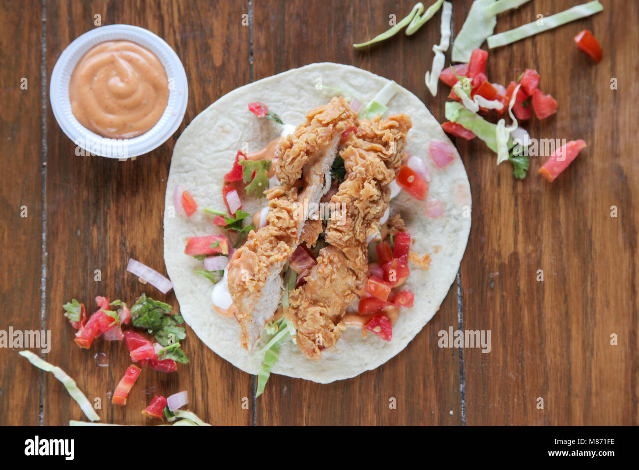 Tortilla Wrap With Fried Chicken Meat And Vegetables Stock Photo Crushpixel Chicken And Shrimp Fried Rice