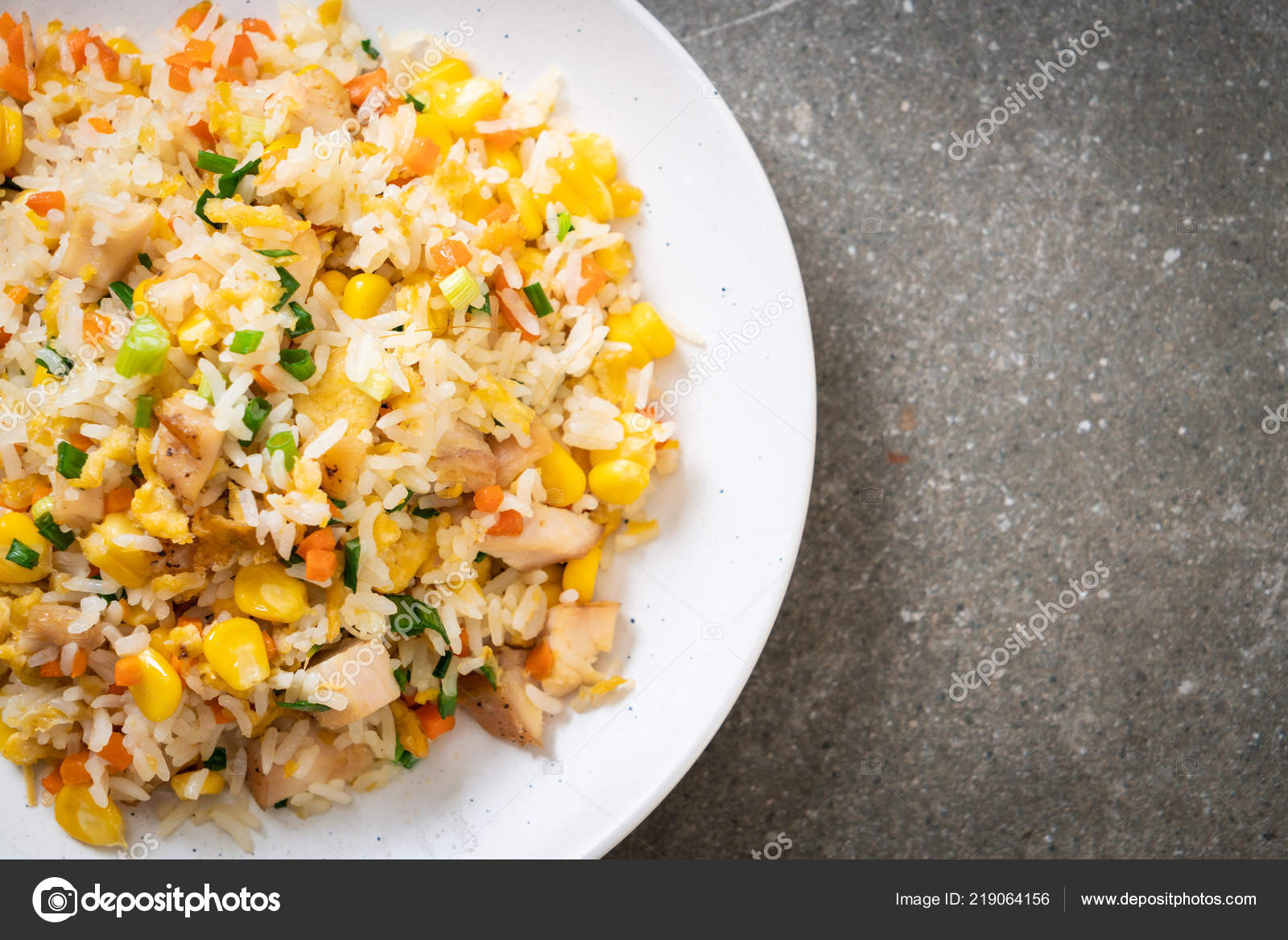 Fried Rice With Chicken Stock Image Image Of Meal Cuisine 128441961 Fried Chicken Recipe Vegetable Oil