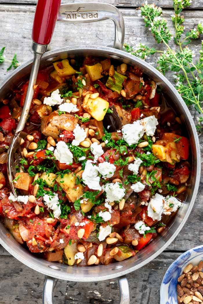 Heat the olive oil in a 12 inch 30 cm oven safe pan over medium high heat. Cooking the eggplant and zucchini separately to their own crispy tender stages is key. Saute the onion garlic and bell peppers until soft about 10 minutes.